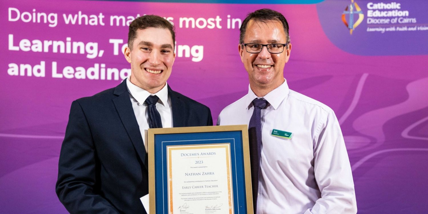 22 Sep 2023 3 min readPrimary school teacher, Nathan Zahra, from St Andrew’s Catholic College in Cairns, has been awarded the 2023 Early Career Teacher Docemus Award. NGS is proud to sponsor this award and recognise the passion and dedication of teachers like Nathan.